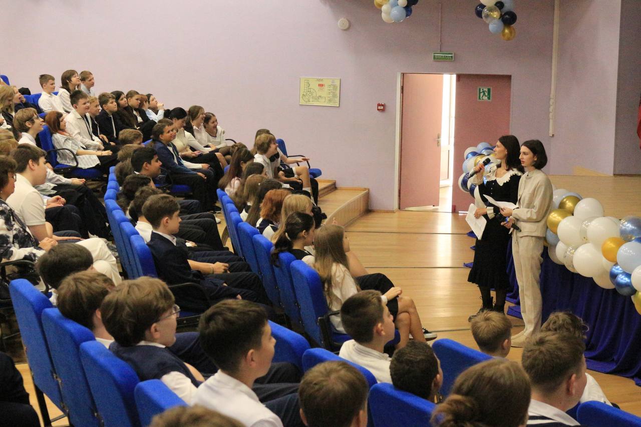 В гости к семиклассникам пришли наши выпускницы, студентки Московского педагогического государственного университета, будущие учителя русского языка и литературы Анна Рюрикова и Ксения Церулева. Вместе с ребятами они провели увлекательную дискуссию, разобрали интересные примеры изменений в языке и предложили ребятам выполнить интерактивные задания, которые помогли лучше понять тему.