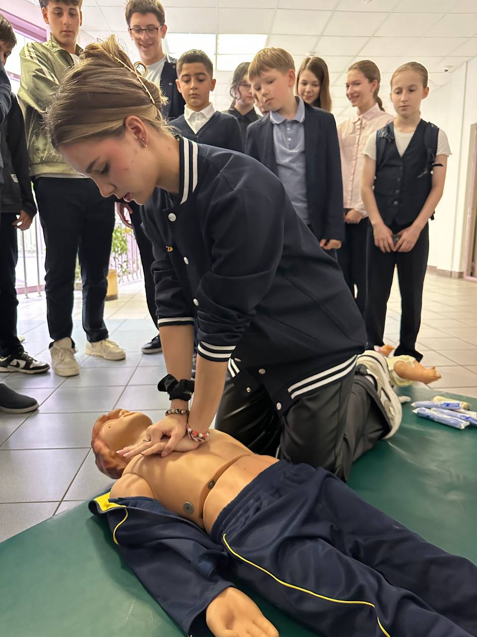 Ученики отвечали на вопросы, проверяя свои знания о том, как действовать в экстренных ситуациях и приняли участие в мастер-классе по оказанию первой помощи, где смогли на практике освоить базовые приемы, которые могут спасти чью-то жизнь.