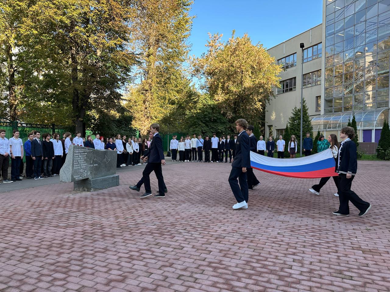 Почётное право принять участие в сегодняшней церемонии было предоставлено ученикам 2 «А», 7 «Г» и 11 «А» классов под руководством их замечательных классных руководителей: Надежде Павловне Спириной, Наталье Петровне Степановой, Надежде Аркадьевне Воробьевой.