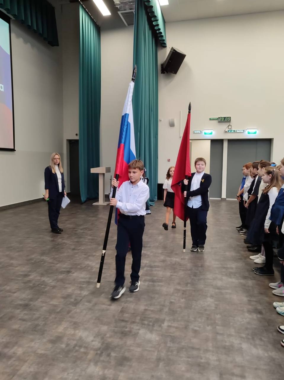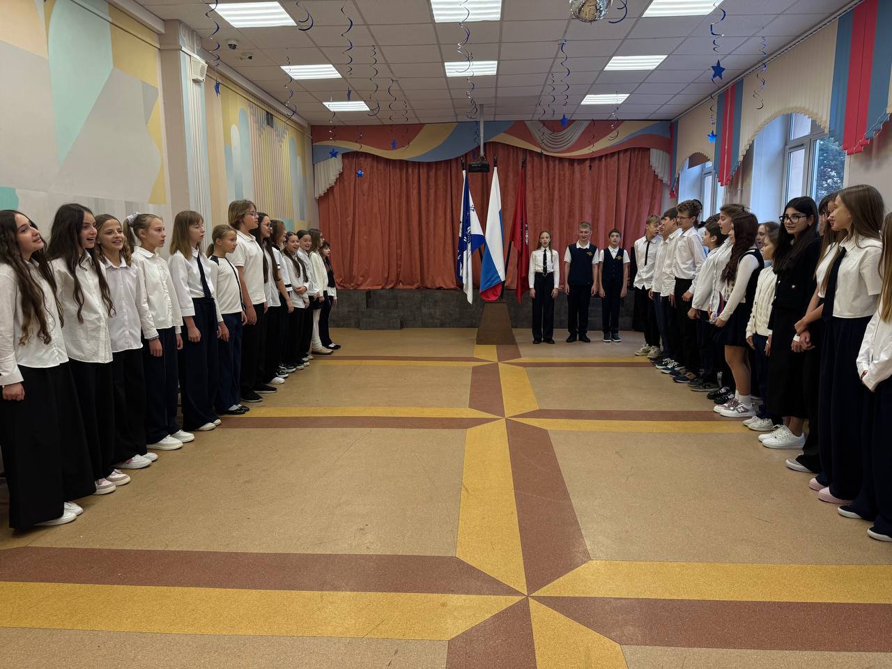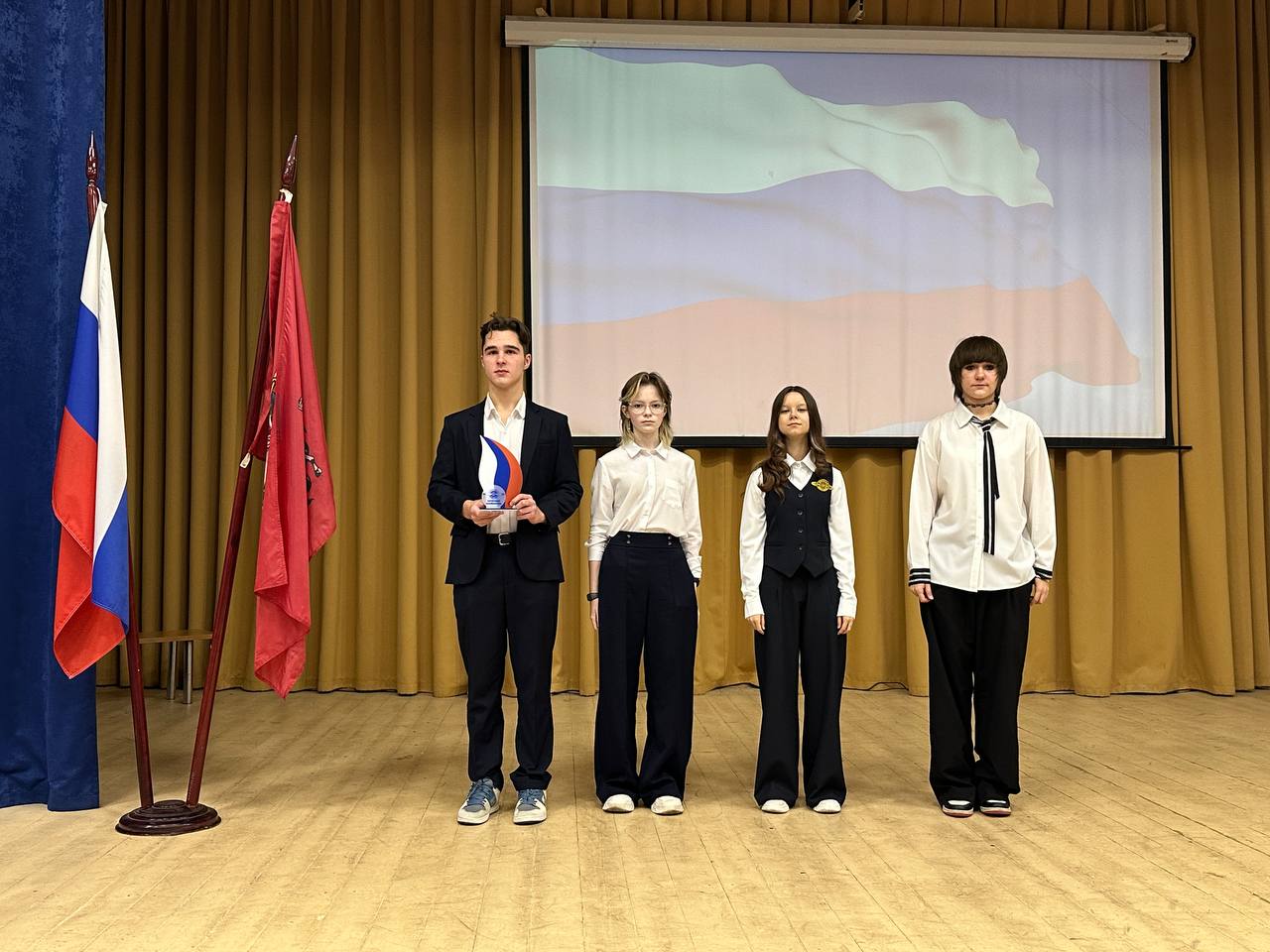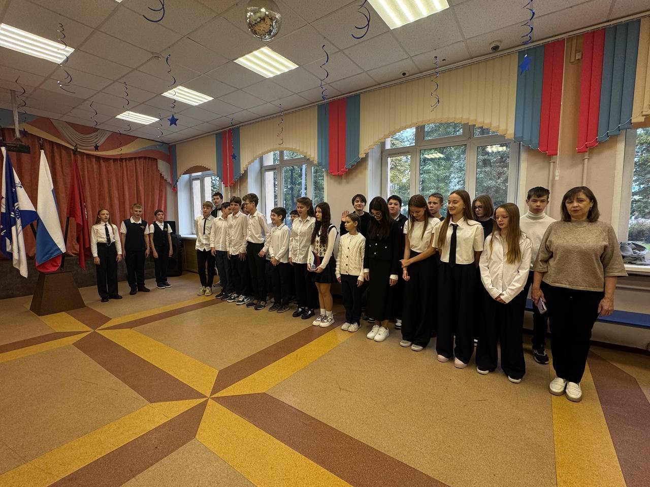 Почётное право принять сегодня участие в церемонии было предоставлено ученикам 4 «Б», 6 «Г» и 8 «Б» классов под руководством их замечательных классных руководителей: Татьяны Владимировны Клёновой, Маргариты Викторовны Ивановой и Аллы Анатольевны Радостевой.