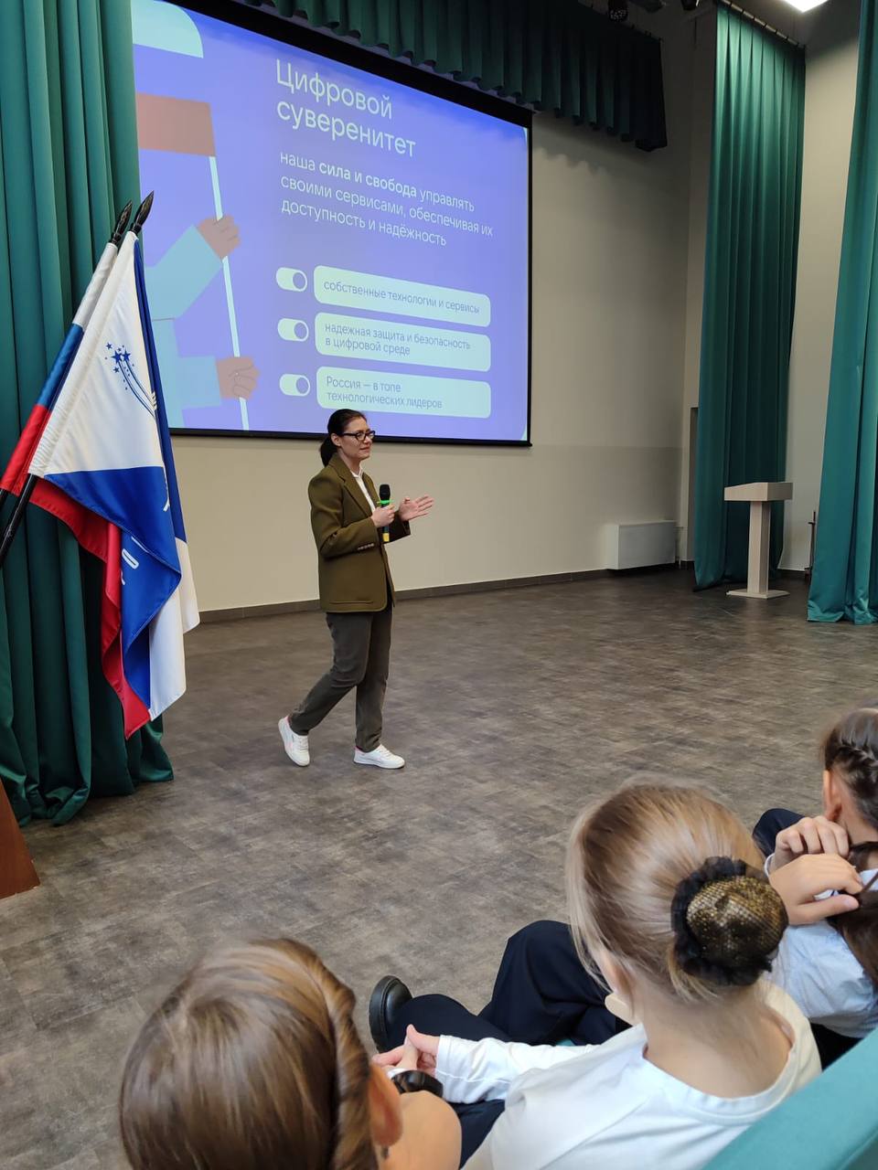 Сегодня утром, в рамках «Разговоров о важном», с учениками 4-х классов была проведена лекция с доцентом Кафедры безопасности и информационных технологий Национального исследовательского университета МЭИ Диной Эдуардовной Борцовой, посвящённая проблеме информационного суверенитета страны и вопросов безопасности в сети.