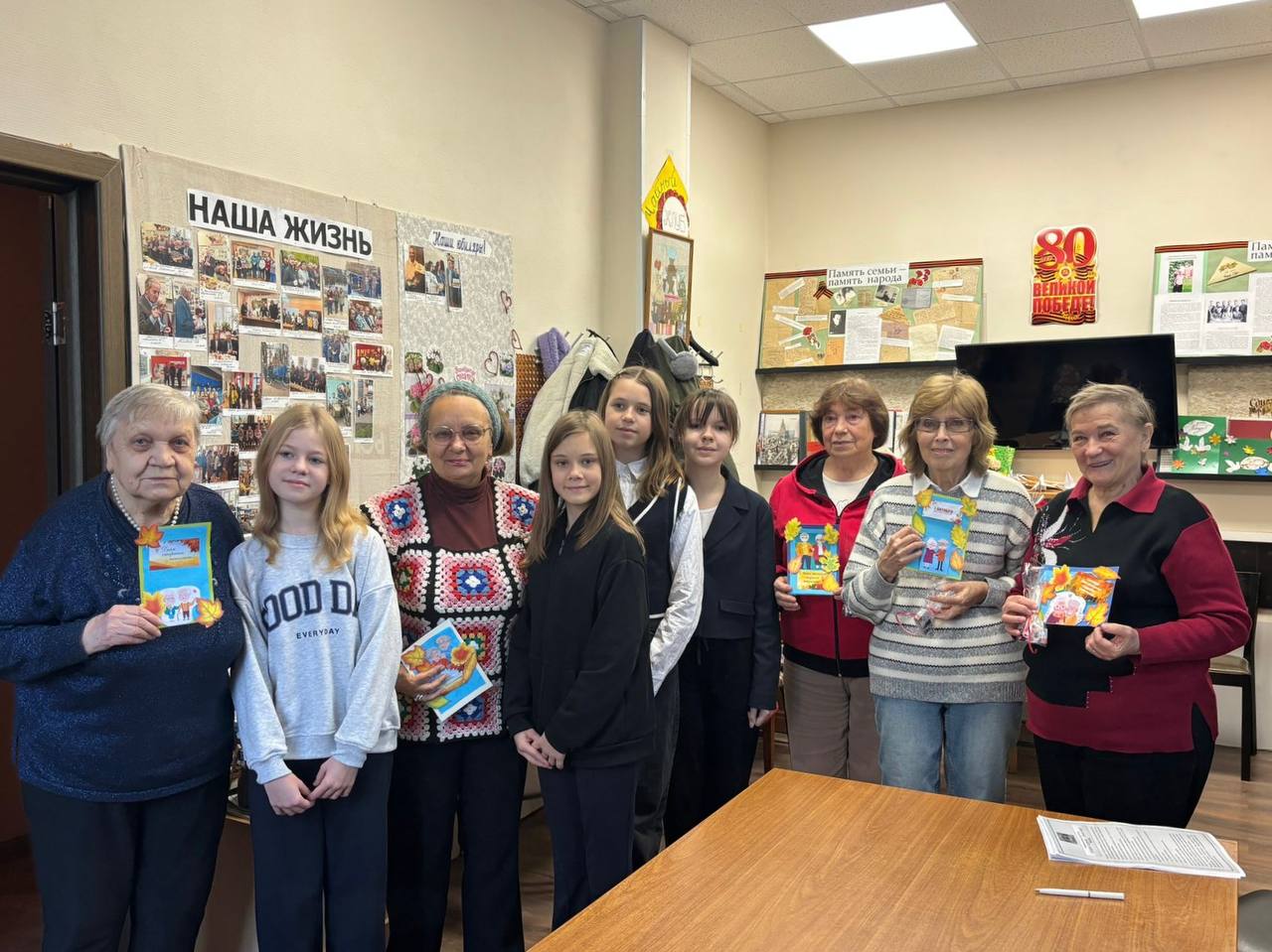 Наши юные волонтеры-пятиклассники потрудились на славу! Под руководством педагога дополнительного образования Марии Петровны они создали красивые и душевные открытки. И сегодня отправились к нашим добрым друзьям в пятую первичную организацию Совета ветеранов района Аэропорт, чтобы поздравить с Днем уважения старшего поколения!